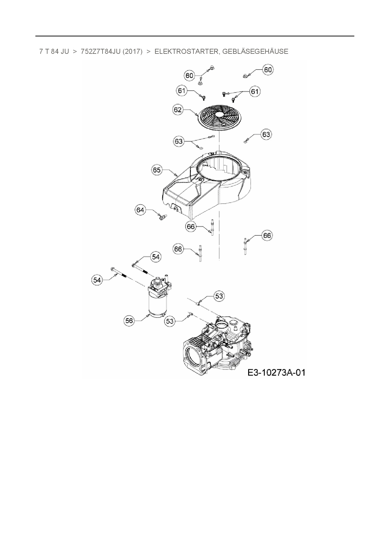 Ersatzteile für Vertikal MTD-Motoren 7 T 84 JU aus der Zeichnung Elektrostarter, Gebläsegehäuse: