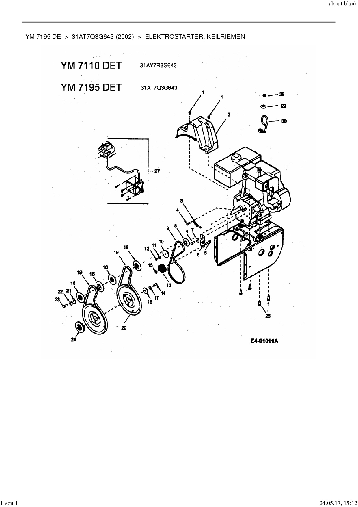 Ersatzteile für Schneefräsen Yard-Man YM 7195 DE aus der Zeichnung Elektrostarter, Keilriemen: