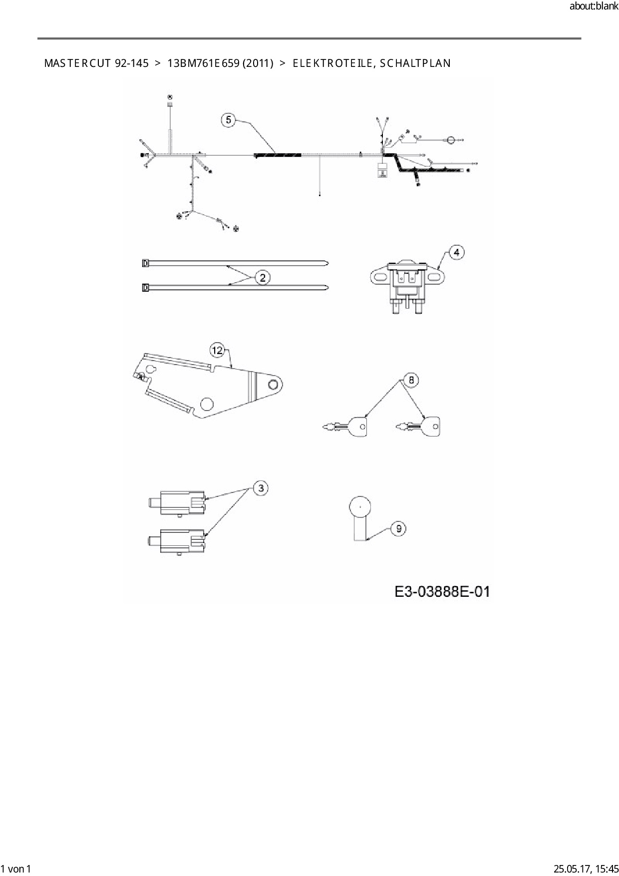 Ersatzteile für Rasentraktor Mastercut Mastercut 92-145 aus der Zeichnung Elektroteile, Schaltplan: