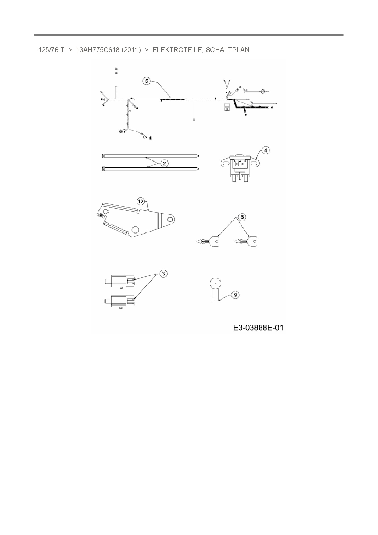 Ersatzteile für Rasentraktor Rasor 125/76 T aus der Zeichnung Elektroteile, Schaltplan: