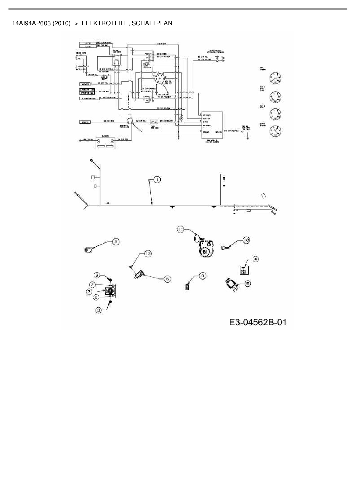 Ersatzteile für Gartentraktor Cub Cadet GT 1224 aus der Zeichnung Elektroteile, Schaltplan:
