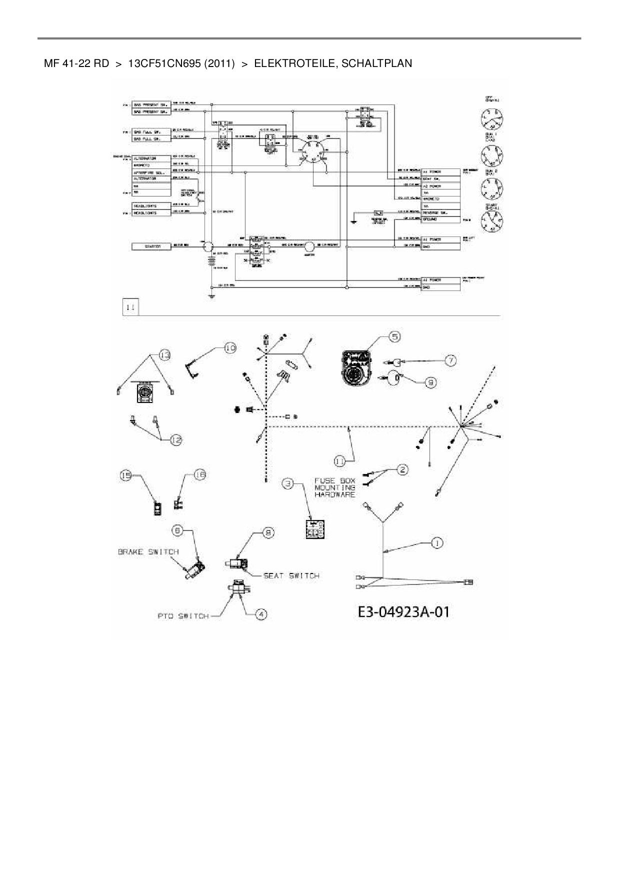 Ersatzteile für Rasentraktor Massey Ferguson MF 41-22 RD aus der Zeichnung Elektroteile, Schaltplan: