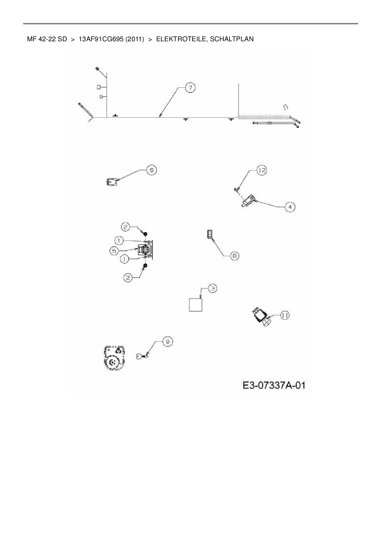 Ersatzteile für Rasentraktor Massey Ferguson MF 42-22 SD aus der Zeichnung Elektroteile, Schaltplan: