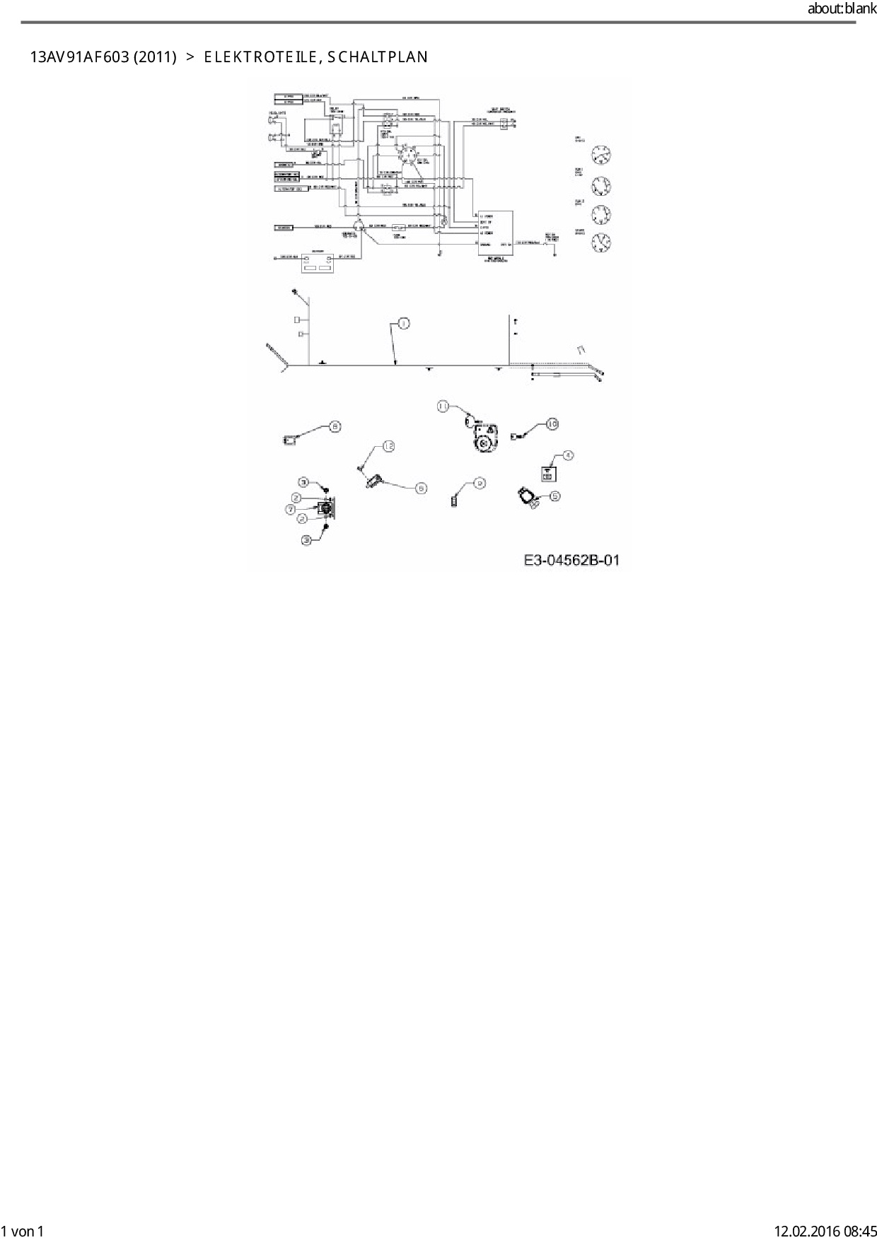 Ersatzteile für Rasentraktor Cub Cadet CC 1017 aus der Zeichnung Elektroteile, Schaltplan: