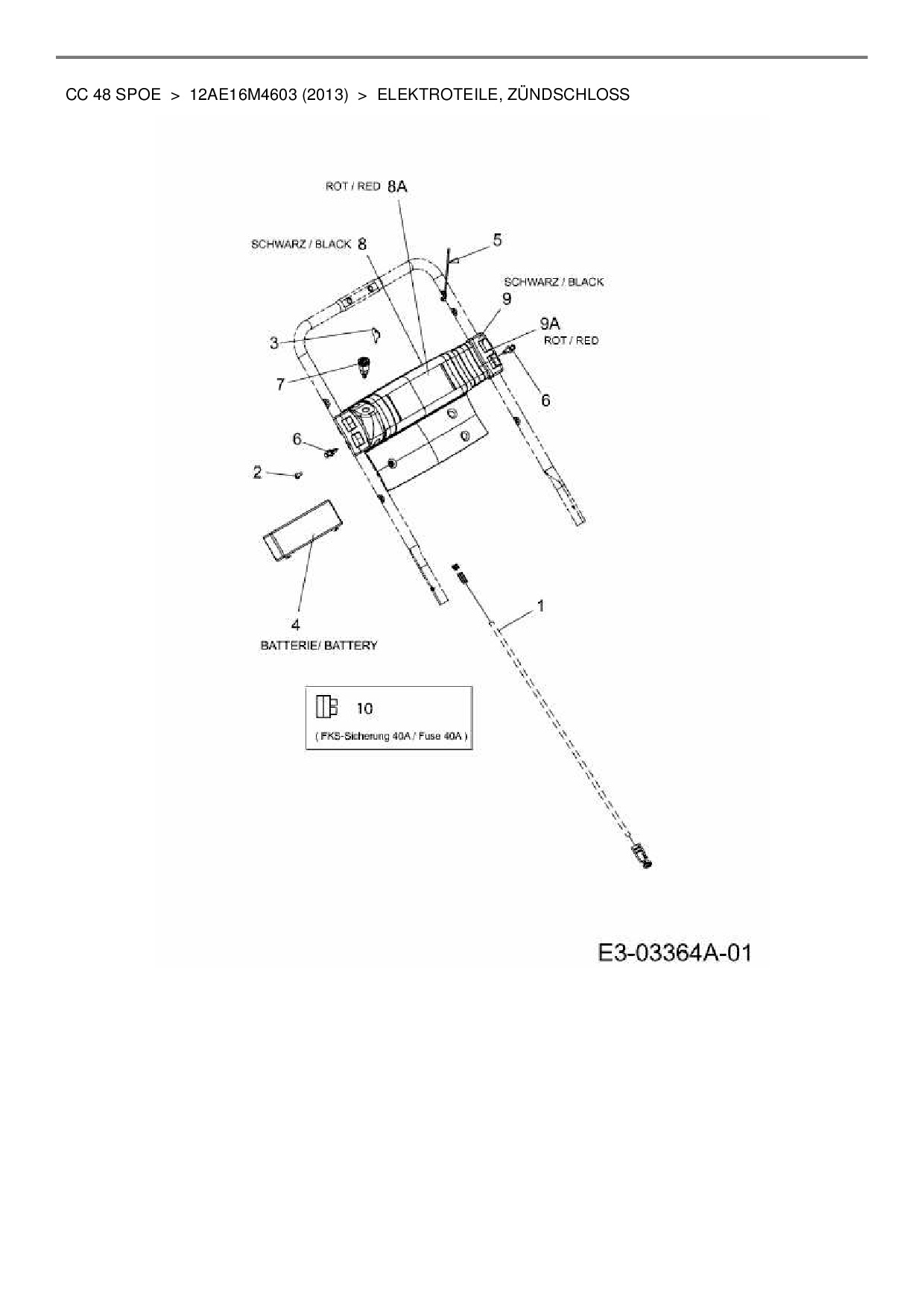 Ersatzteile für Motormäher mit Antrieb Cub Cadet CC 48 SPOE aus der Zeichnung Elektroteile, Zündschloss: