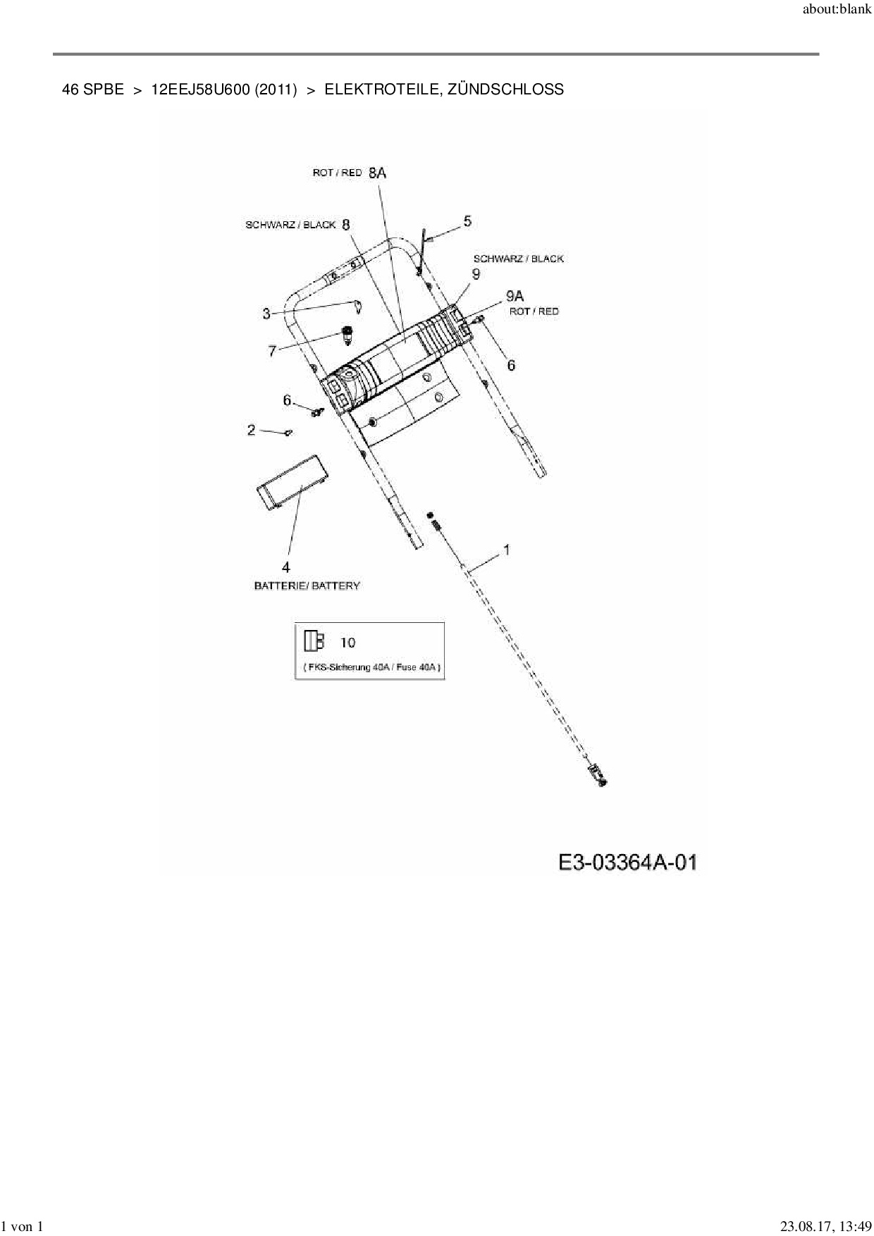 Ersatzteile für Motormäher mit Antrieb MTD 46 SPBE aus der Zeichnung Elektroteile, Zündschloss: