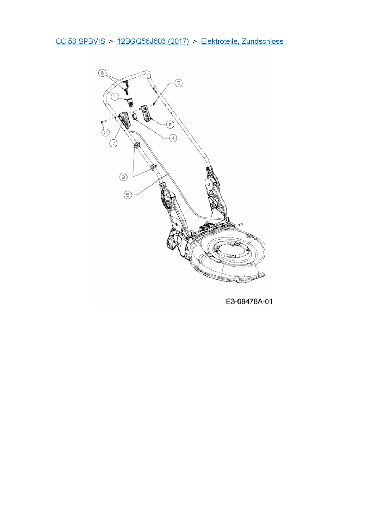 Ersatzteile für Motormäher mit Antrieb Cub Cadet CC 53 SPBVIS aus der Zeichnung Elektroteile, Zündschloss: