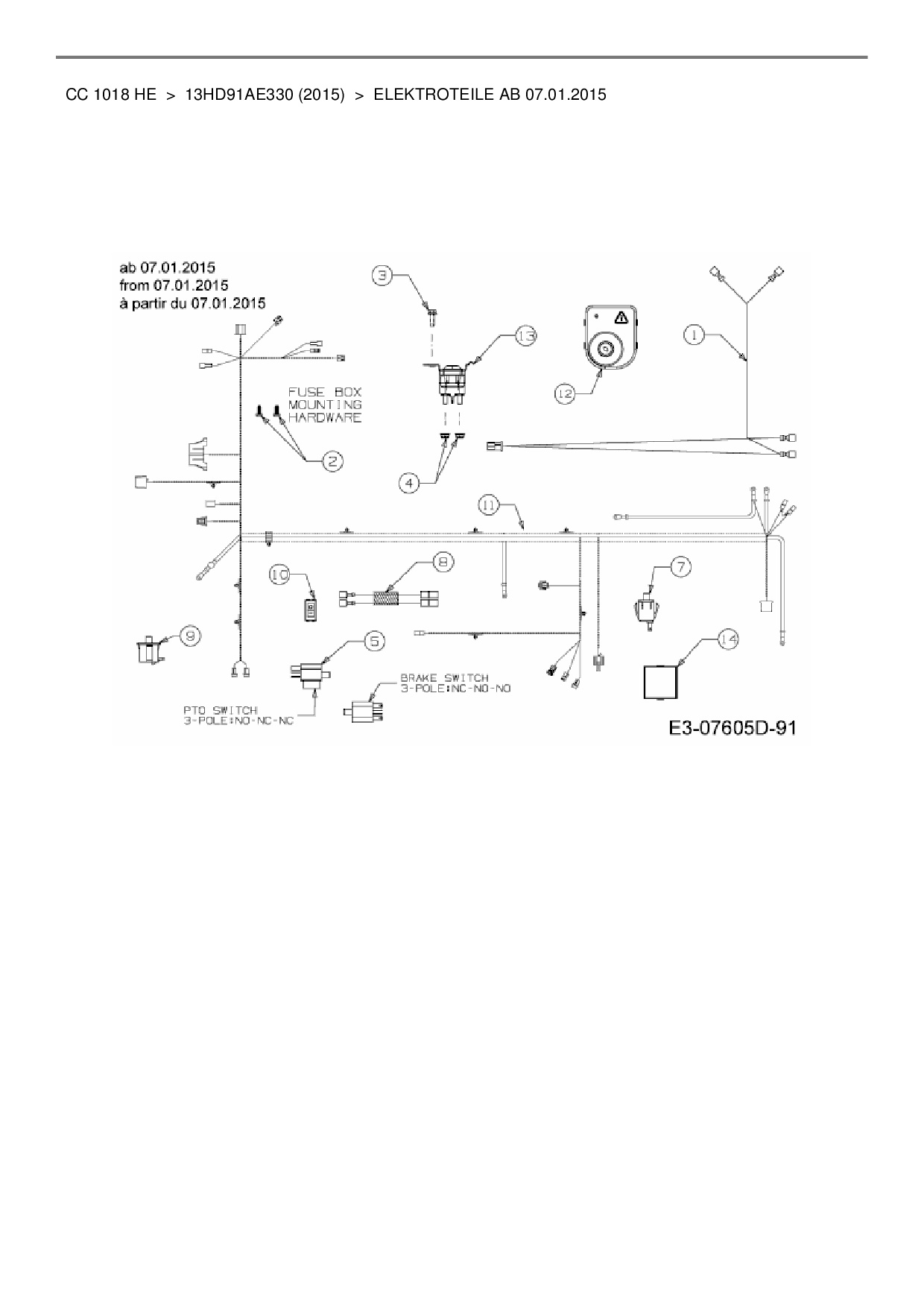 Ersatzteile für Rasentraktor Cub Cadet CC 1018 HE aus der Zeichnung Elektroteile ab 07.01.2015: