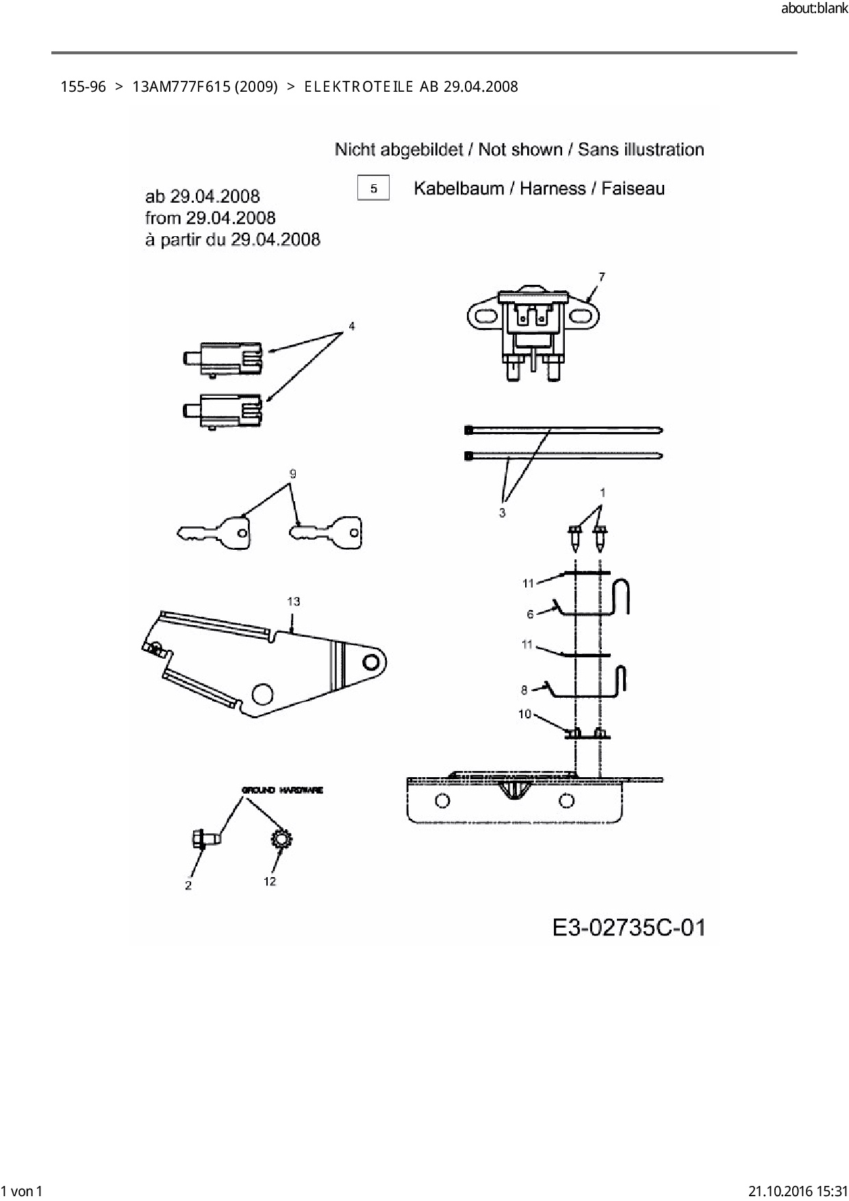 Ersatzteile für Rasentraktor Black Edition 155-96 aus der Zeichnung Elektroteile ab 29.04.2008:
