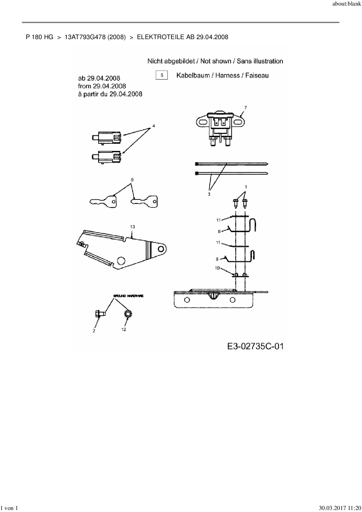 Ersatzteile für Rasentraktor MTD P 180 HG aus der Zeichnung Elektroteile ab 29.04.2008: