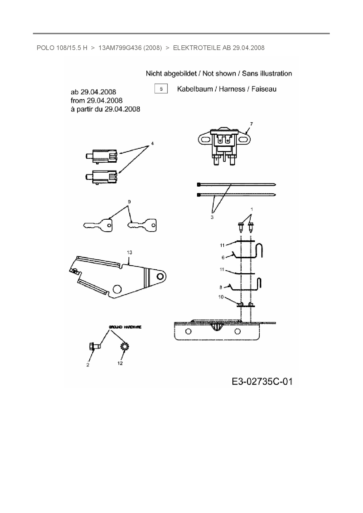 Ersatzteile für Rasentraktor Oleo-Mac Polo 108/15.5 H aus der Zeichnung Elektroteile ab 29.04.2008: