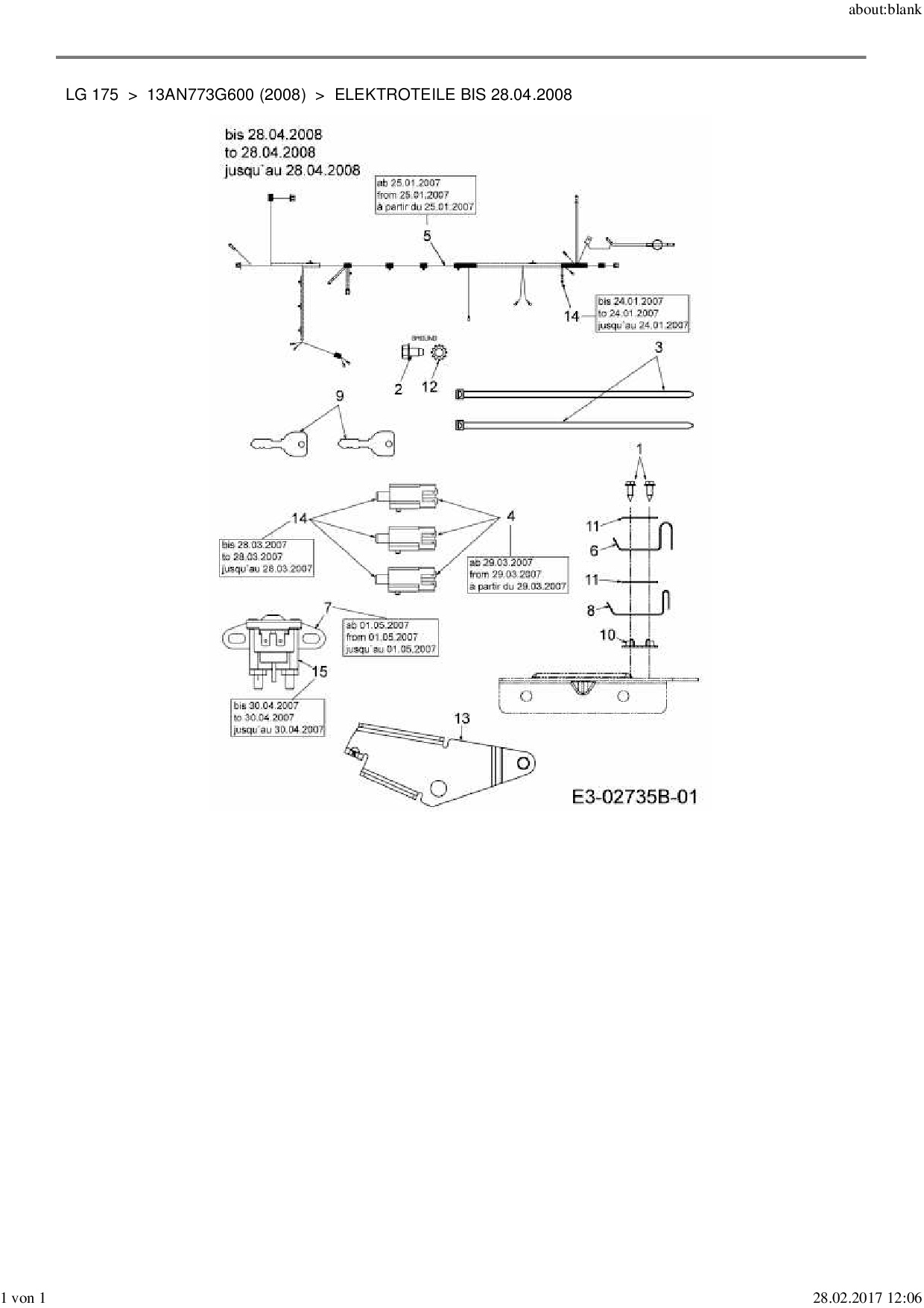 Ersatzteile für Rasentraktor MTD LG 175 aus der Zeichnung Elektroteile bis 28.04.2008: