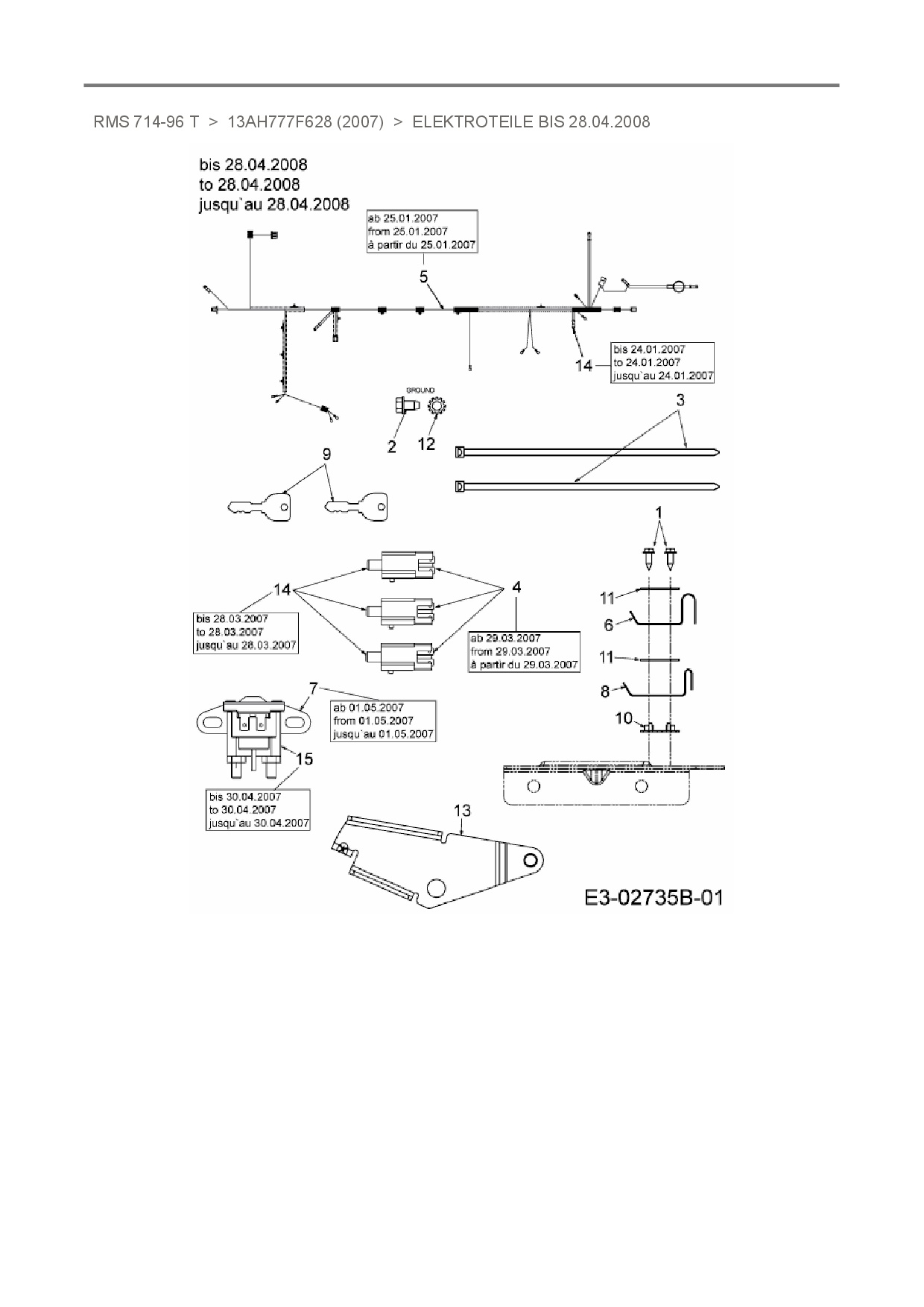 Ersatzteile für Rasentraktor Raiffeisen RMS 714-96 T aus der Zeichnung Elektroteile bis 28.04.2008: