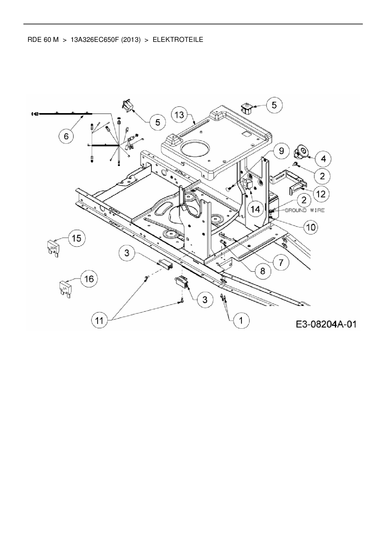 Ersatzteile für Rasentraktor Wolf-Garten RDE 60 M aus der Zeichnung Elektroteile: