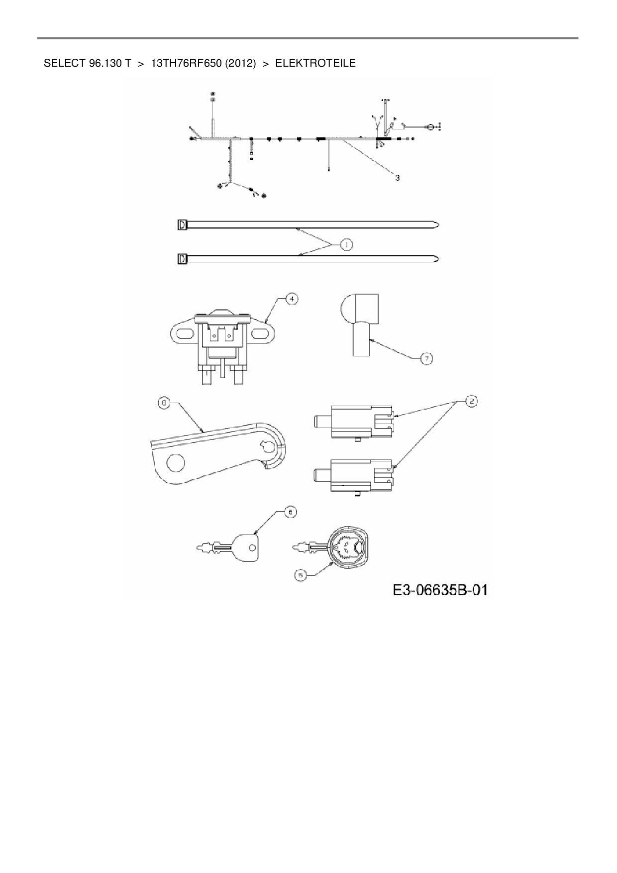 Ersatzteile für Rasentraktor Wolf-Garten Select 96.130 T aus der Zeichnung Elektroteile: