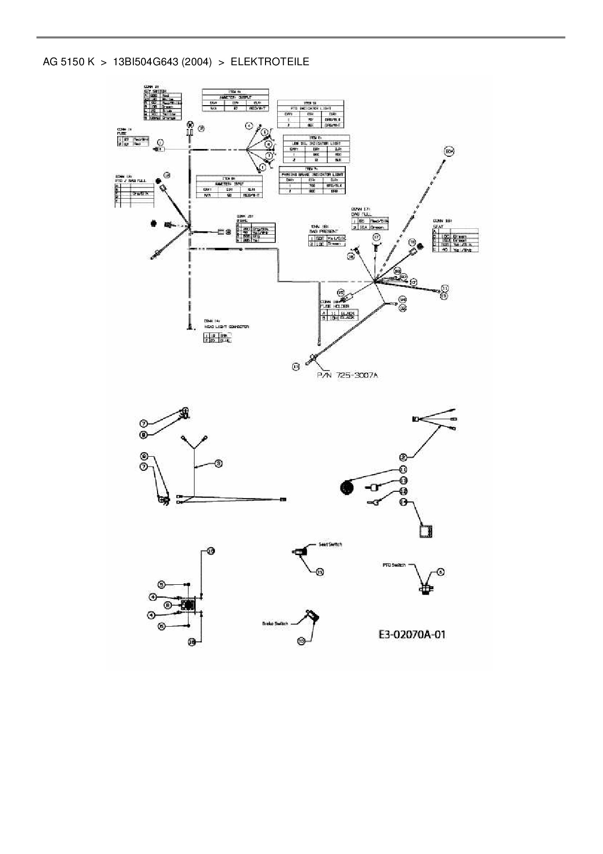 Ersatzteile für Rasentraktor Yard-Man AG 5150 K aus der Zeichnung Elektroteile: