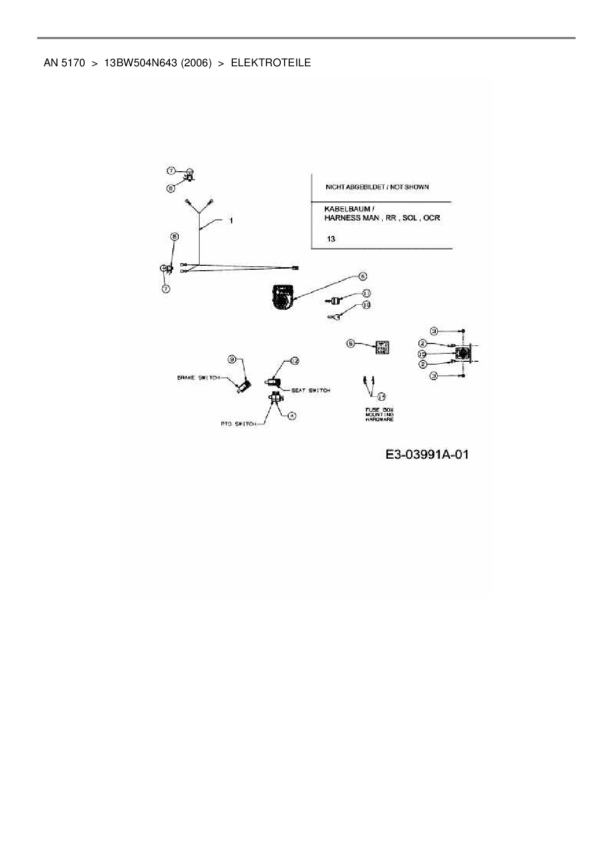 Ersatzteile für Rasentraktor Yard-Man AN 5170 aus der Zeichnung Elektroteile: