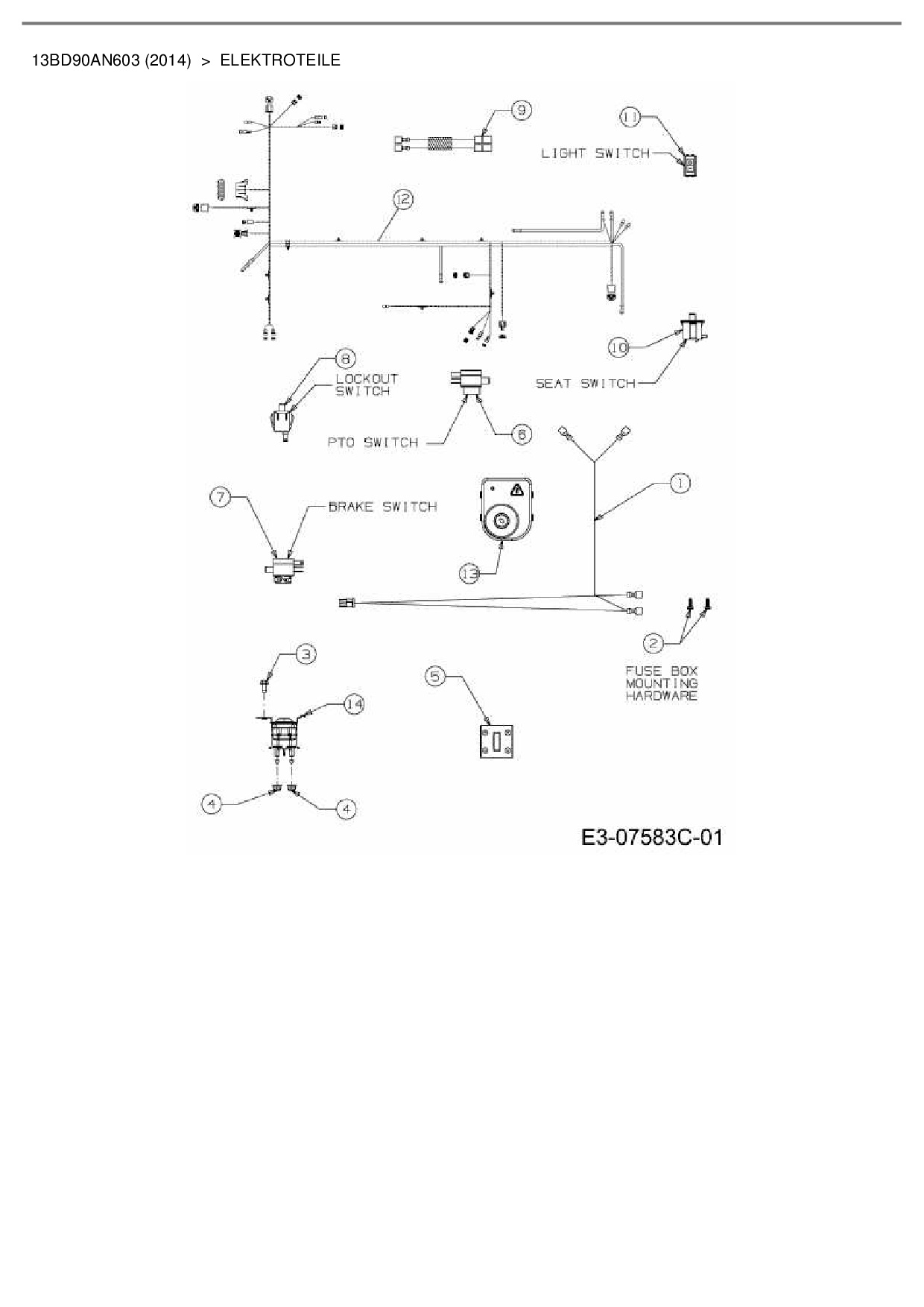Ersatzteile für Rasentraktor Cub Cadet CC 1018 AN aus der Zeichnung Elektroteile: