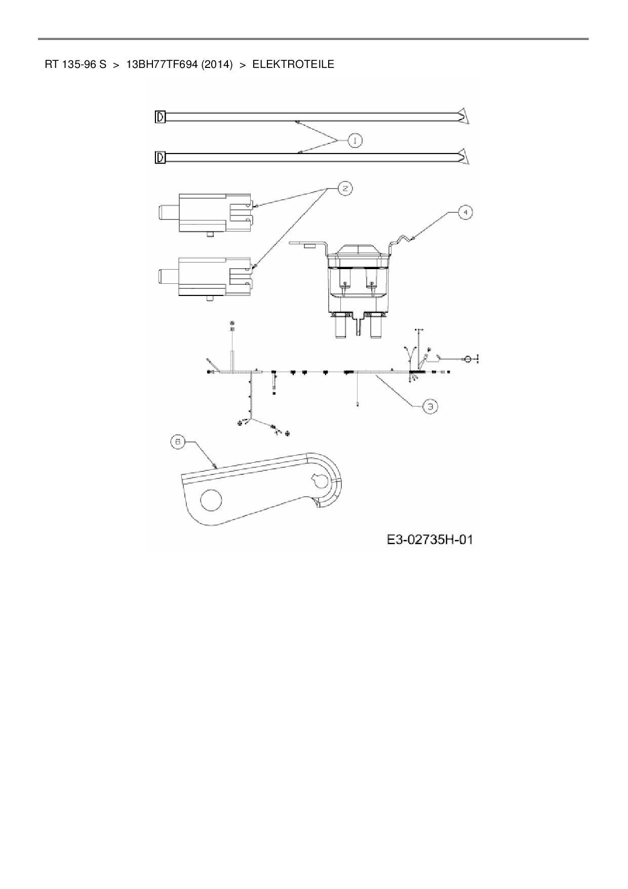 Ersatzteile für Rasentraktor Lux Tools RT 135-96 S aus der Zeichnung Elektroteile: