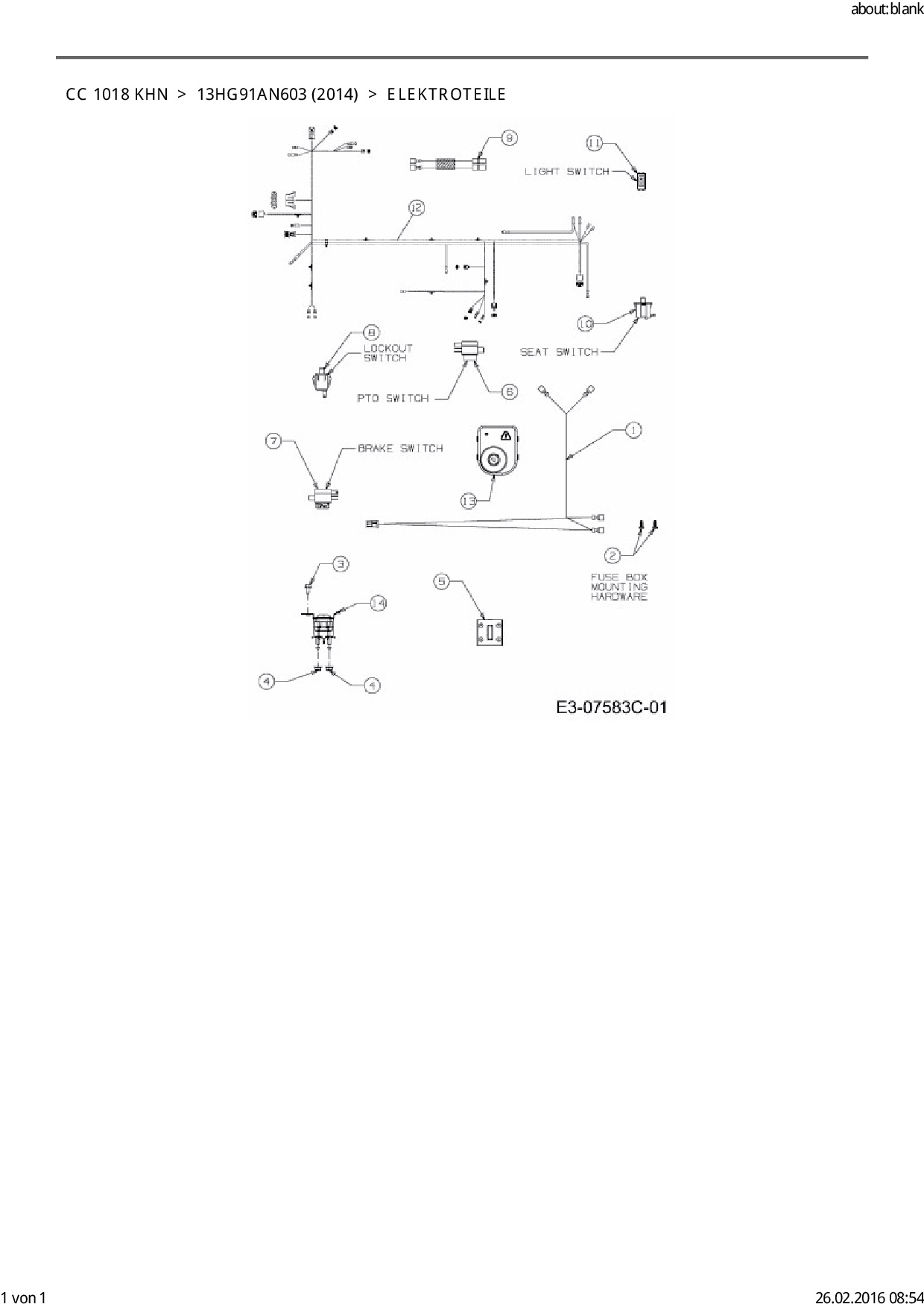 Download Ersatzteil-Zeichnung Cub Cadet CC 1018 KHN Zeichnung Elektroteile (PDF-Format)