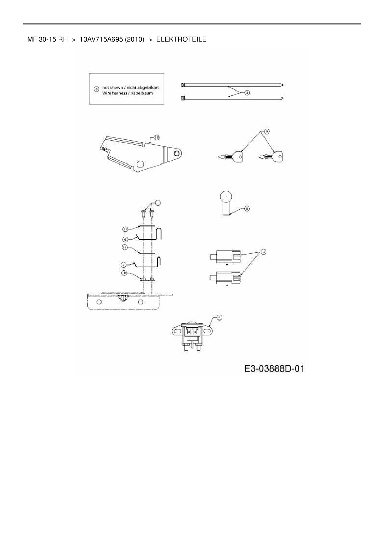 Ersatzteile für Rasentraktor Massey Ferguson MF 30-15 RH aus der Zeichnung Elektroteile: