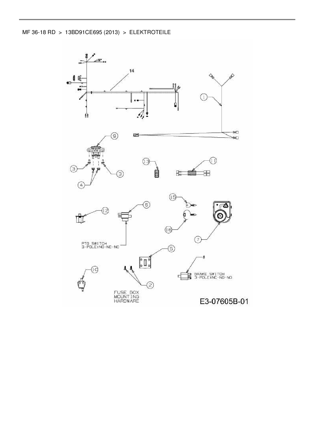 Zeichnung für Massey Ferguson Rasentraktor MF 36-18 RD mit der Geräte-Artikelnr. 13BD91CE695 ab Baujahr 2013: