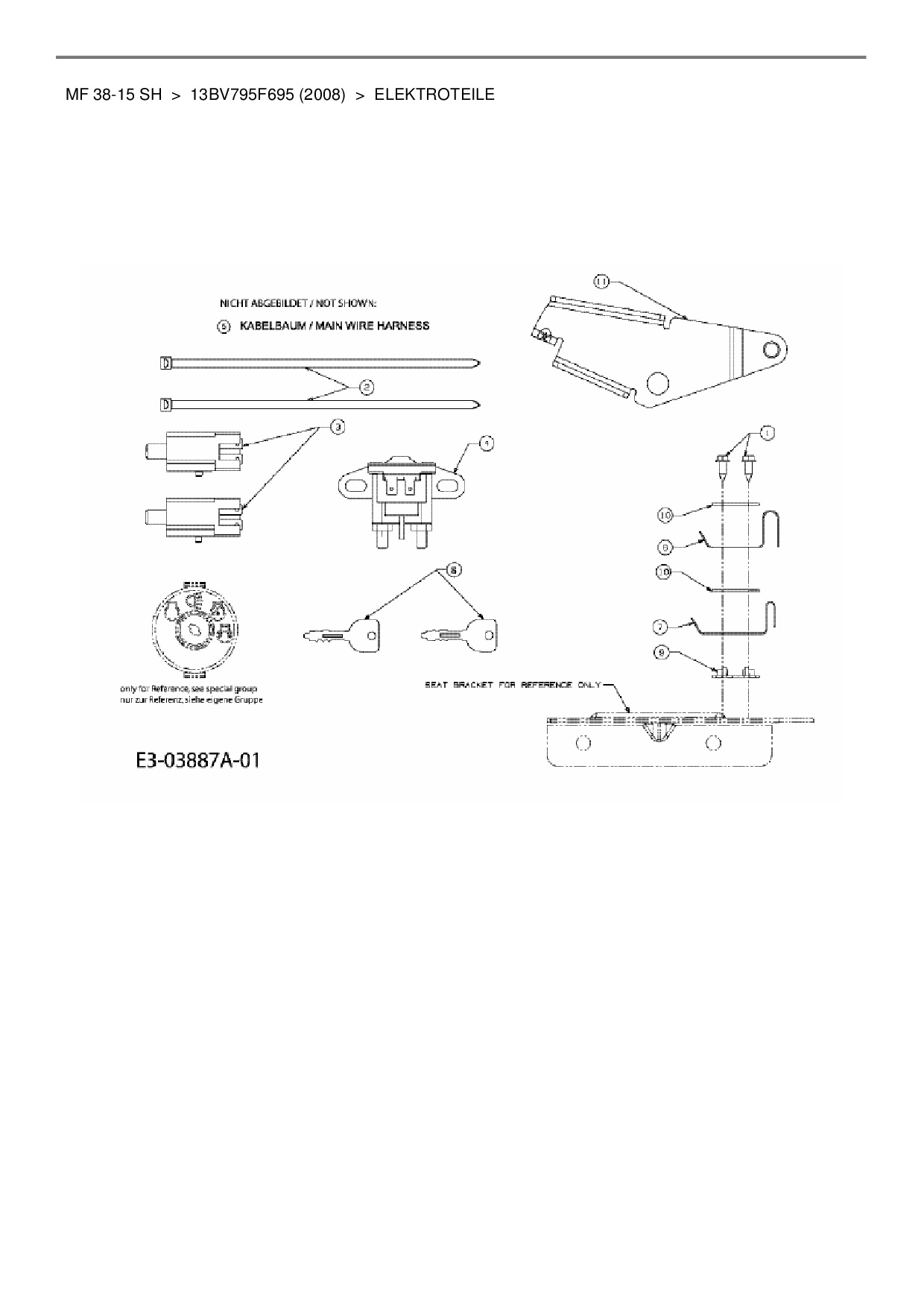 Ersatzteile für Rasentraktor Massey Ferguson MF 38-15 SH aus der Zeichnung Elektroteile: