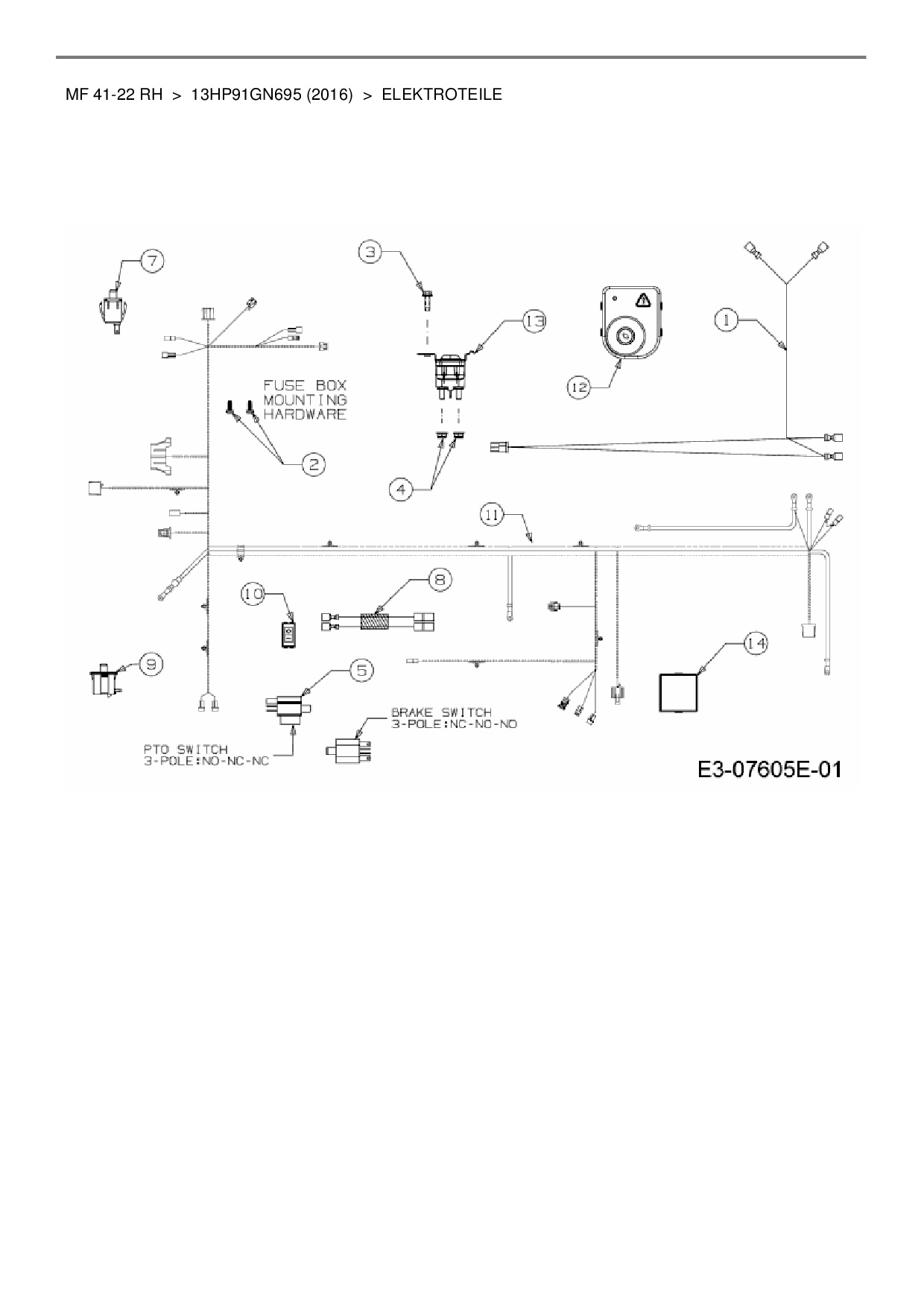 Ersatzteile für Rasentraktor Massey Ferguson MF 41-22 RH aus der Zeichnung Elektroteile: