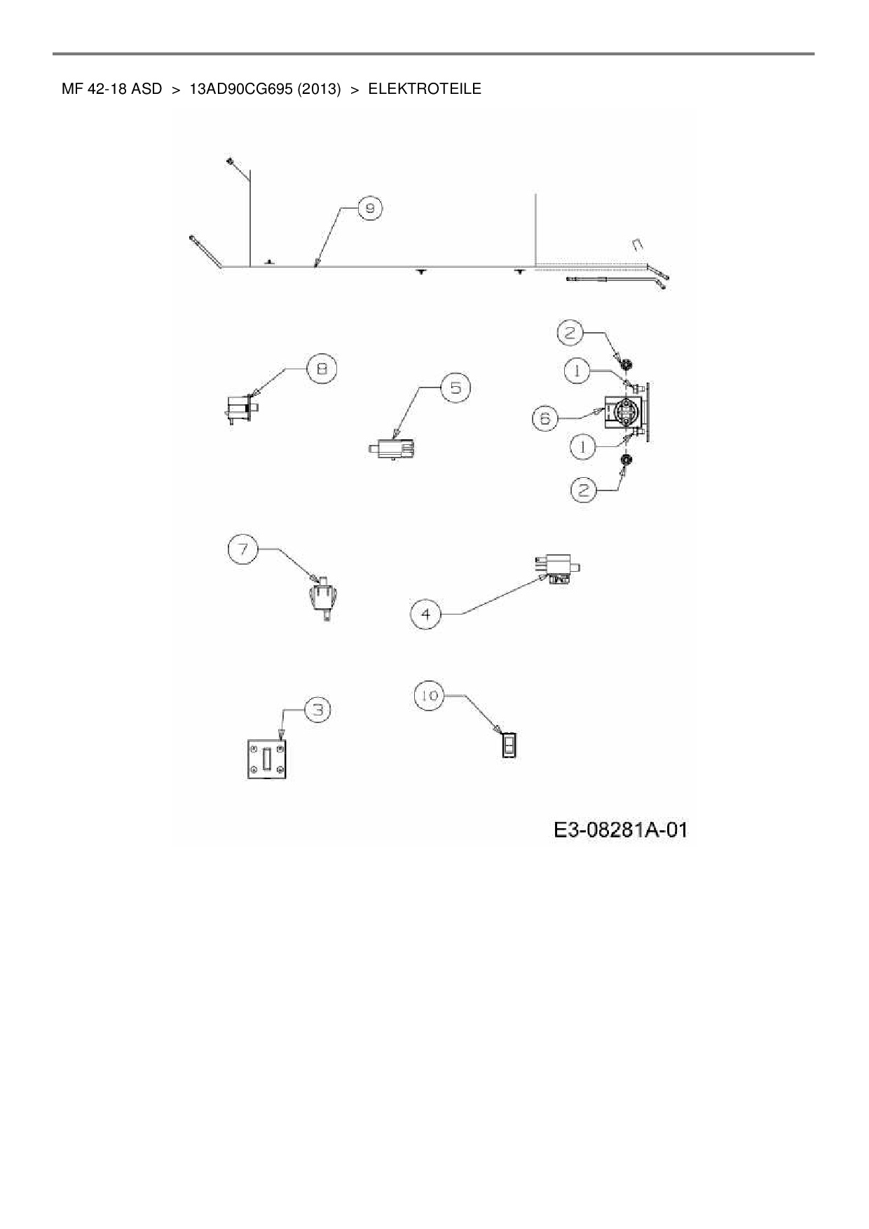 Ersatzteile für Rasentraktor Massey Ferguson MF 42-18 ASD aus der Zeichnung Elektroteile:
