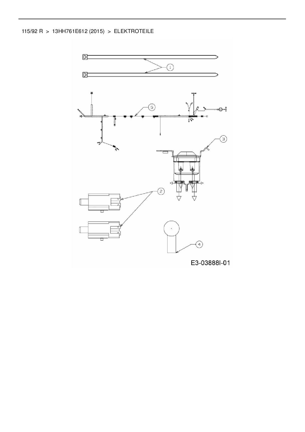 Ersatzteile für Rasentraktor MTD 115/92 R aus der Zeichnung Elektroteile: