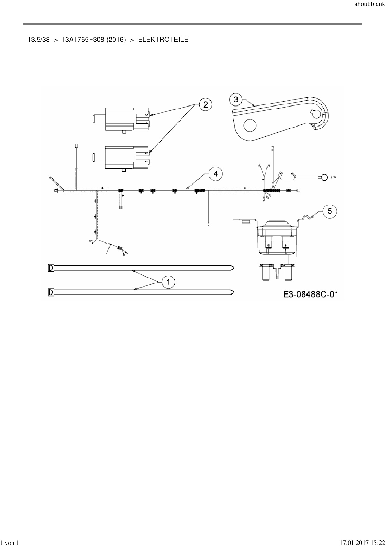 Ersatzteile für Rasentraktor MTD 13.5/38 aus der Zeichnung Elektroteile: