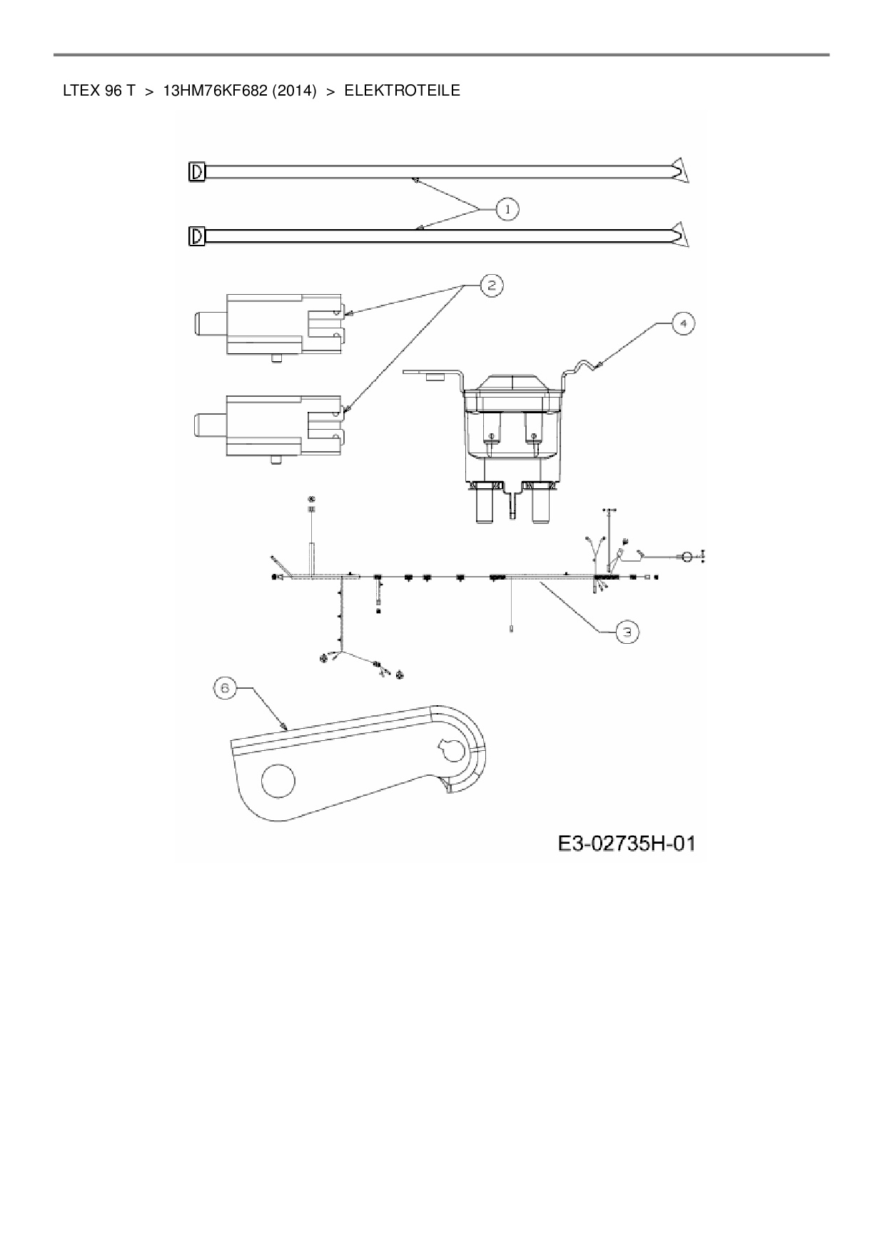 Ersatzteile für Rasentraktor MTD LTEX 96 T aus der Zeichnung Elektroteile: