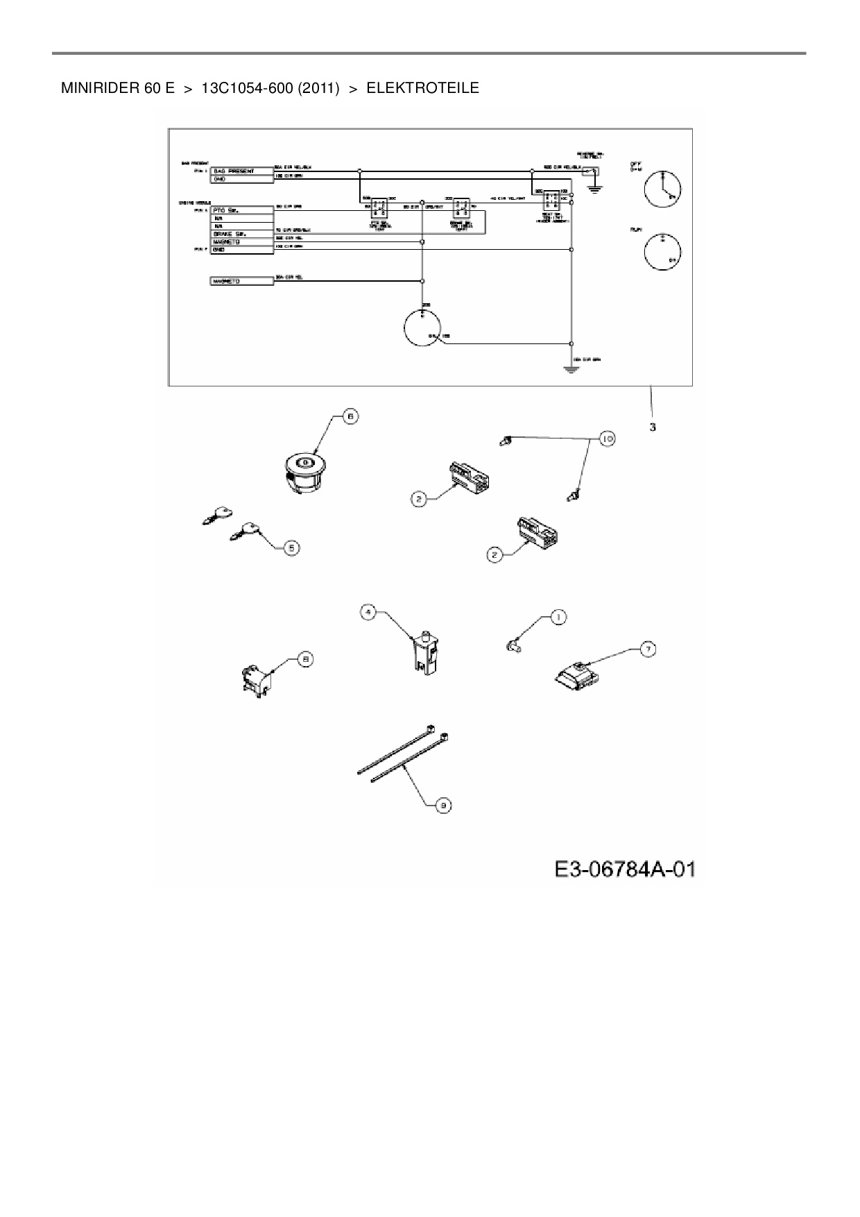 Ersatzteile für Rasentraktor MTD Minirider 60 E aus der Zeichnung Elektroteile: