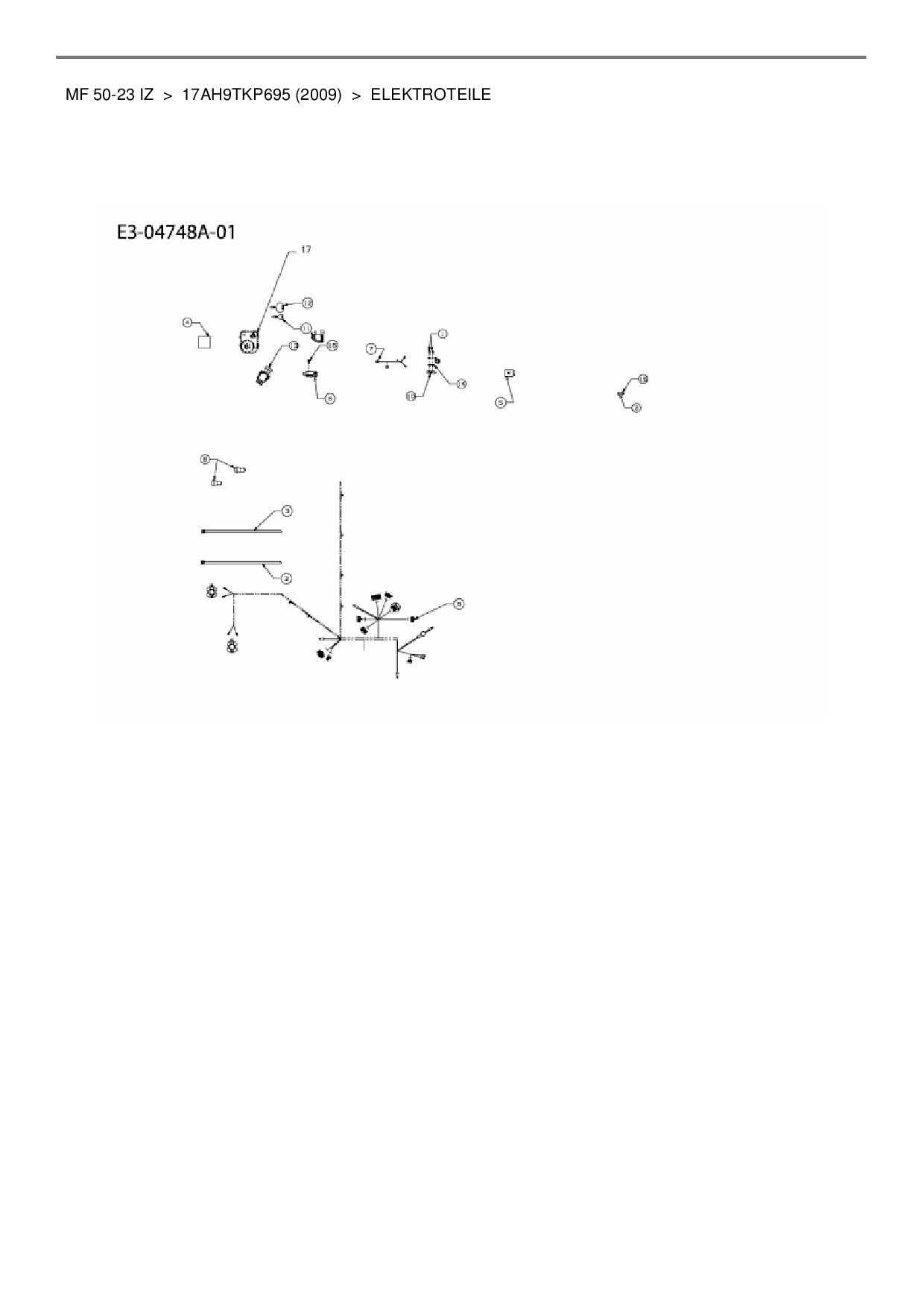 Zeichnung für Massey Ferguson Zero Turn MF 50-23 IZ mit der Geräte-Artikelnr. 17AH9TKP695 ab Baujahr 2009: