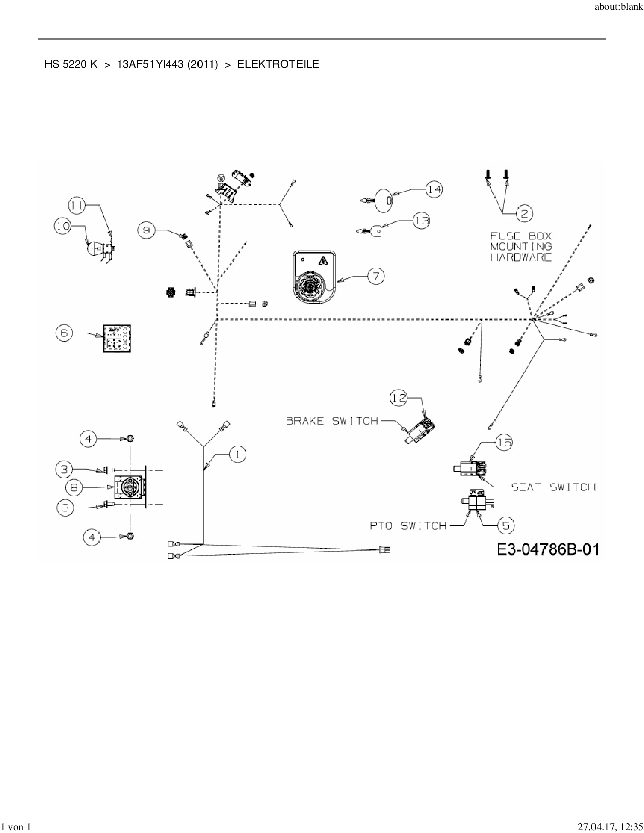 Ersatzteile für Rasentraktor Yard-Man HS 5220 K aus der Zeichnung Elektroteile: