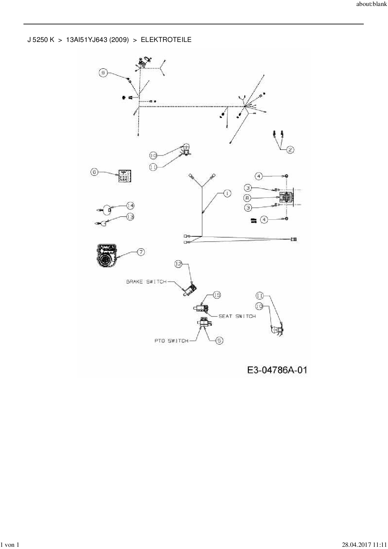 Ersatzteile für Rasentraktor Yard-Man J 5250 K aus der Zeichnung Elektroteile: