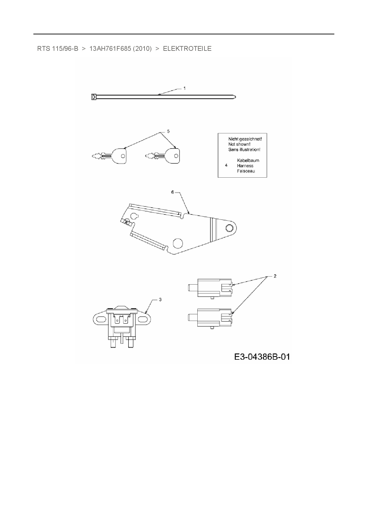 Zeichnung für Sunline Rasentraktor RTS 115/96-B mit der Geräte-Artikelnr. 13AH761F685 ab Baujahr 2010: