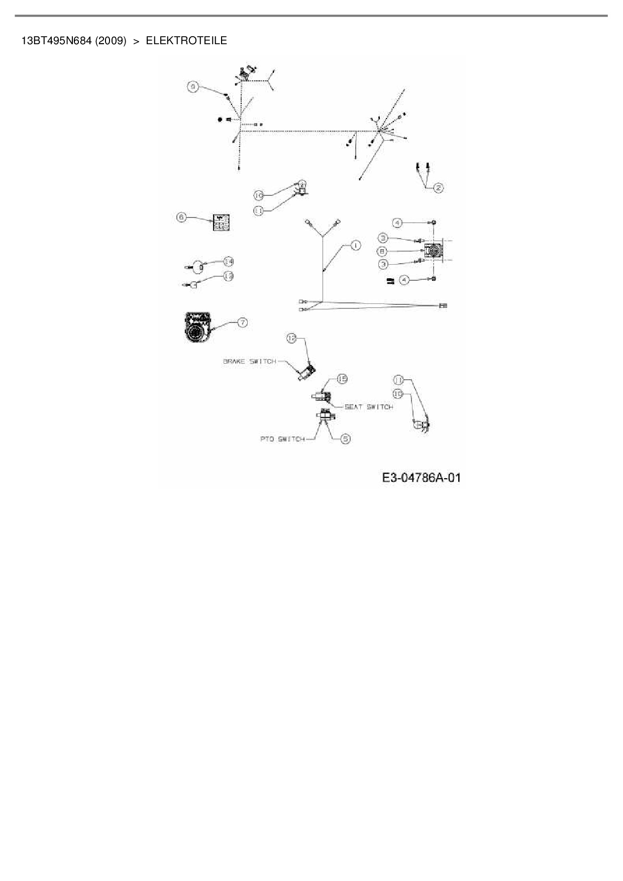 Zeichnung für Bolens Rasentraktor BL 200/105 H mit der Geräte-Artikelnr. 13BT495N684 ab Baujahr 2009: