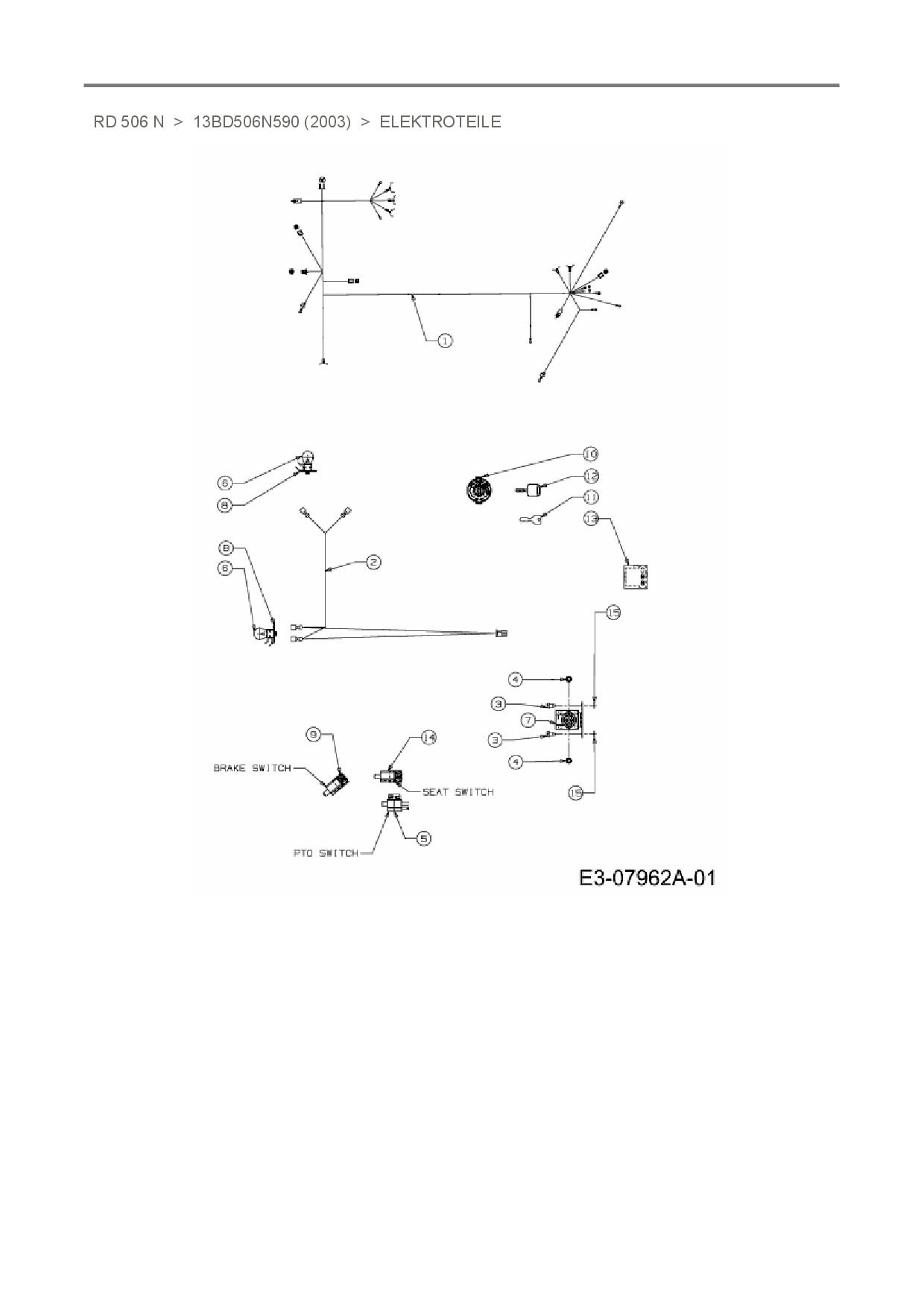 Ersatzteile für Rasentraktor White RD 506 N aus der Zeichnung Elektroteile: