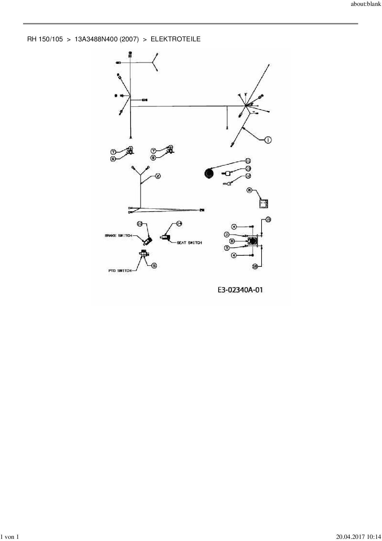 Ersatzteile für Rasentraktor MTD RH 150/105 aus der Zeichnung Elektroteile: