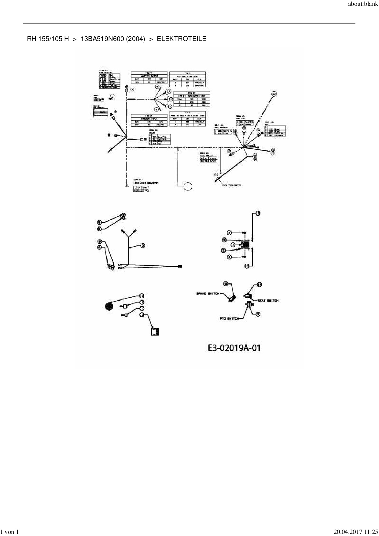 Ersatzteile für Rasentraktor MTD RH 155/105 H aus der Zeichnung Elektroteile: