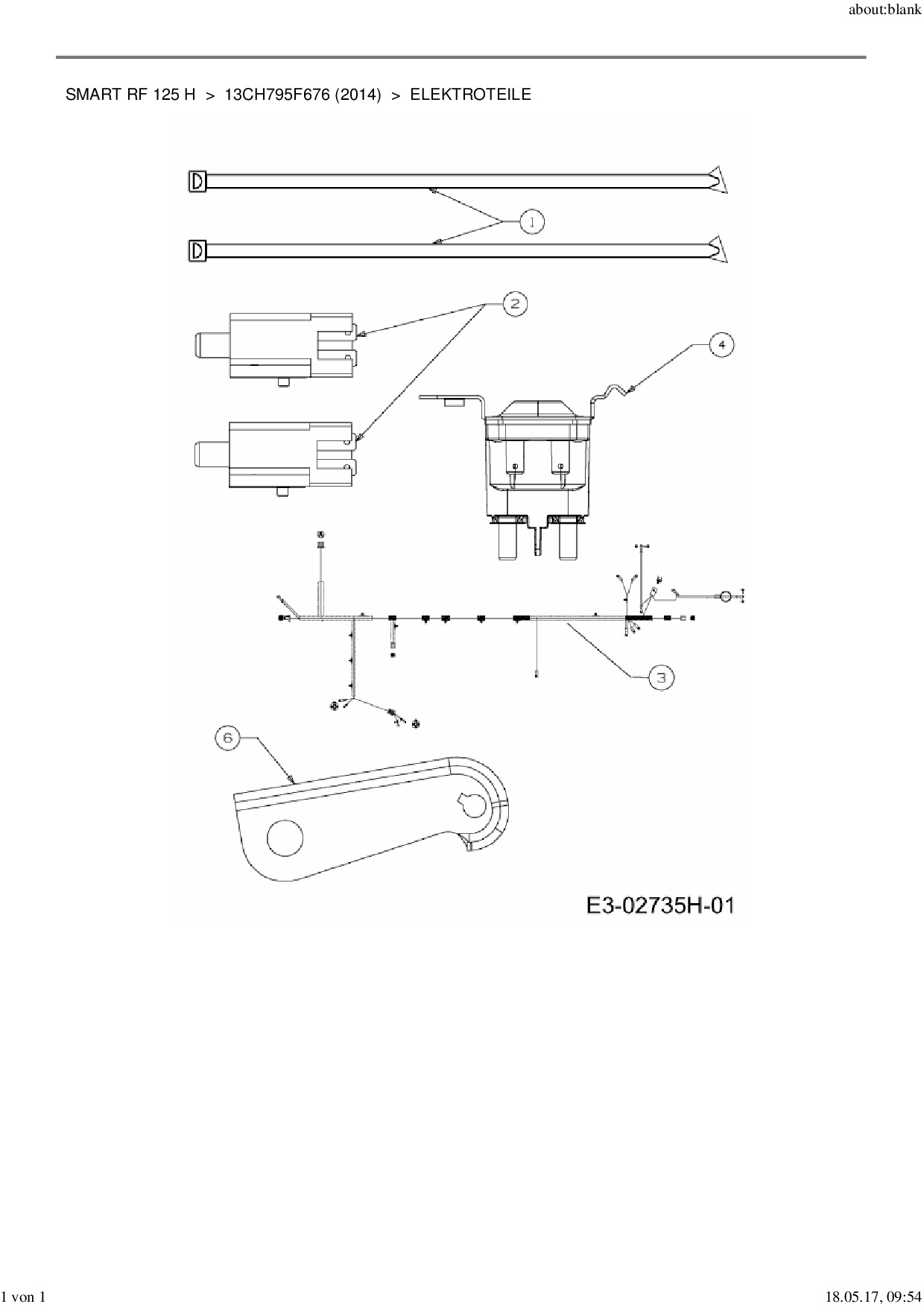 Ersatzteile für Rasentraktor MTD Smart RF 125 H aus der Zeichnung Elektroteile: