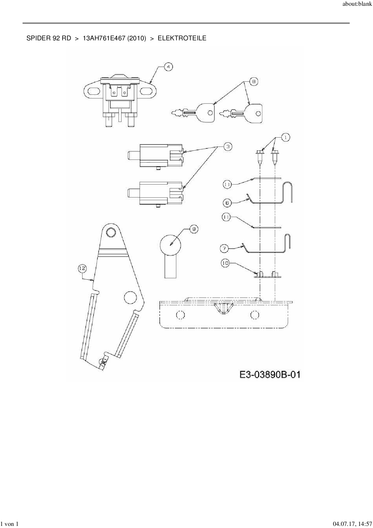 Ersatzteile für Rasentraktor MTD Spider 92 RD aus der Zeichnung Elektroteile: