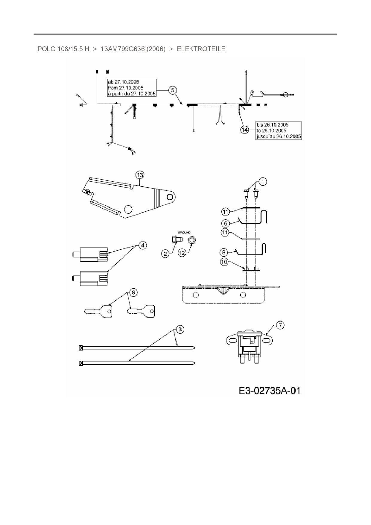 Ersatzteile für Rasentraktor Oleo-Mac Polo 108/15.5 H aus der Zeichnung Elektroteile: