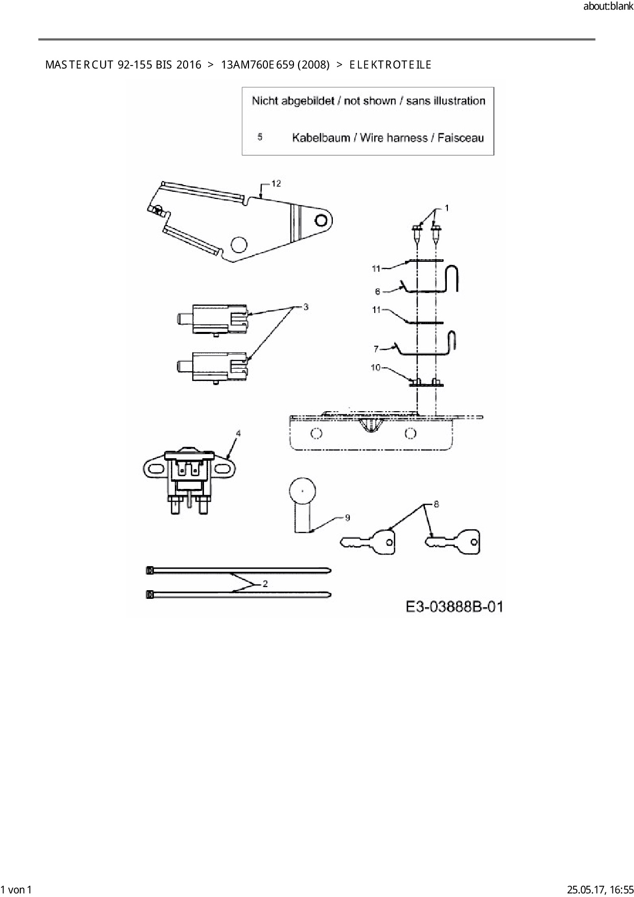 Ersatzteile für Rasentraktor Mastercut Mastercut 92-155 bis 2016 aus der Zeichnung Elektroteile:
