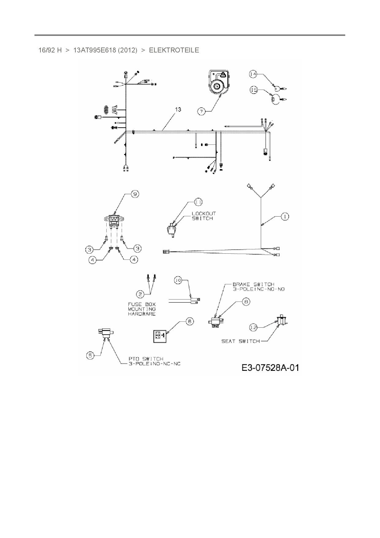 Ersatzteile für Rasentraktor Rasor 16/92 H aus der Zeichnung Elektroteile: