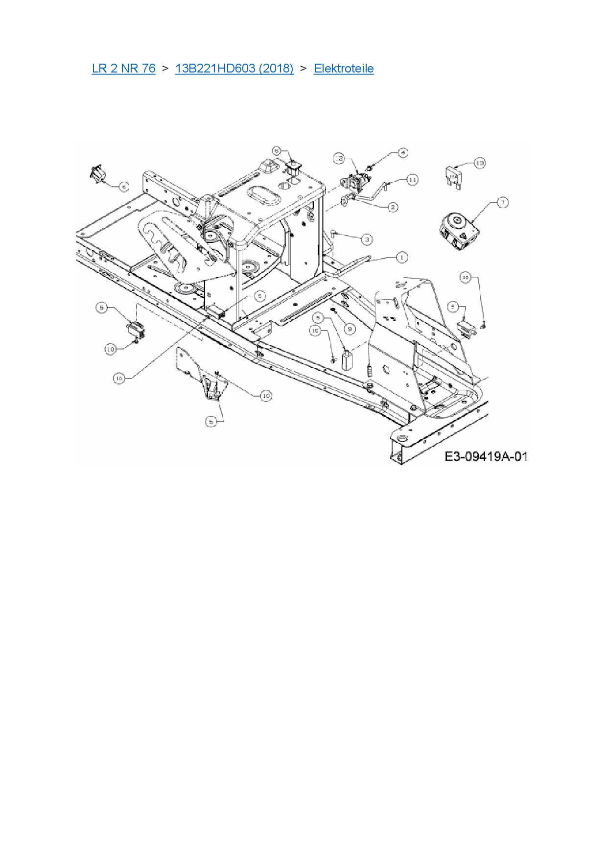 Ersatzteile für Rasentraktor Cub Cadet LR 2 NR 76 aus der Zeichnung Elektroteile: