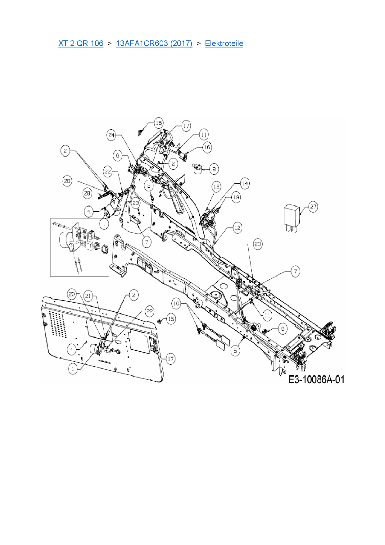 Ersatzteile für Rasentraktor Cub Cadet XT 2 QR 106 aus der Zeichnung Elektroteile:
