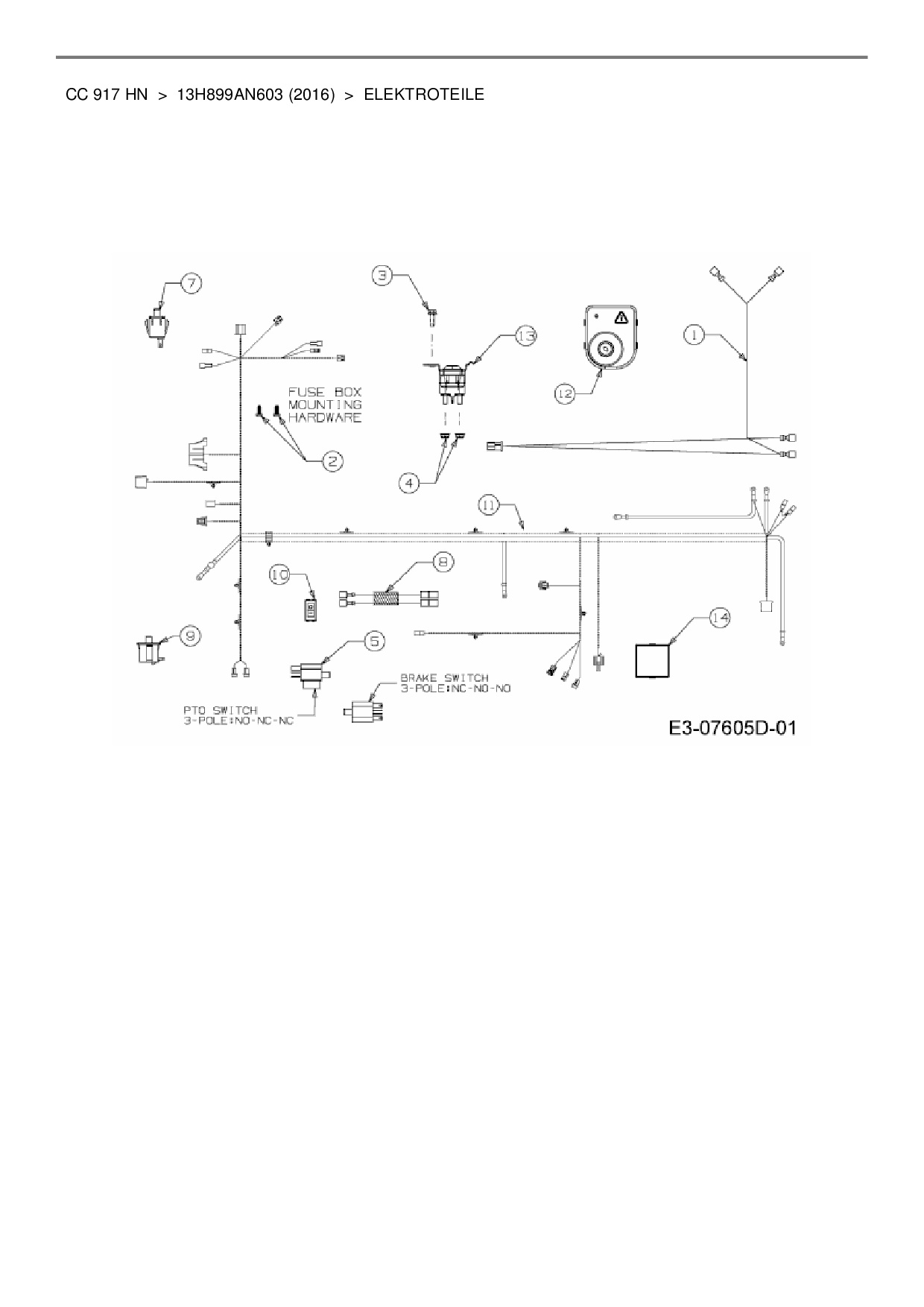 Ersatzteile für Rasentraktor Cub Cadet CC 917 HN aus der Zeichnung Elektroteile:
