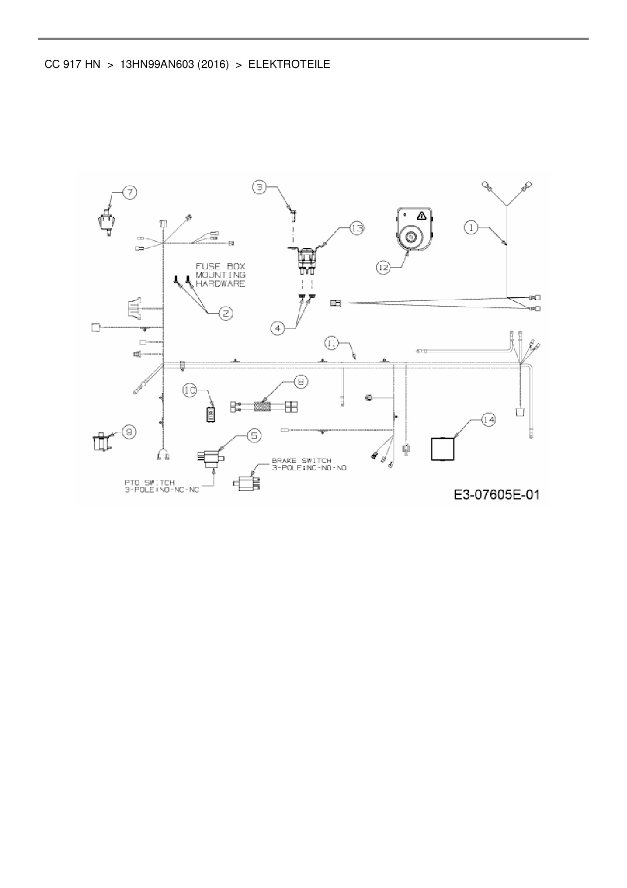 Ersatzteile für Rasentraktor Cub Cadet CC 917 HN aus der Zeichnung Elektroteile: